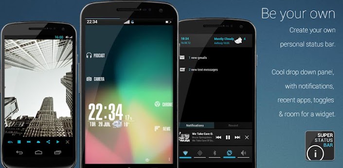 Status Bar v0.16.0.1 ͙ Requirements By Download Apk Files | Android s | Android Market | Fndroidapk.blogspot.com: Android: 2.1 up ͙ Requirements By Download Apk Files | Android s | Android Market | Fndroidapk.blogspot.com: Customize, potency more beaiful bor status bar ͙ NOW SUPPORT DOWNLOADABLE MES ͙ CREATE OWN SHARE IT GooglePlay: bit.ly/OL8Cmk ͙ At last a bar a custom notification panel suit user! ͙ with los features! ͙ ͙ [break] ͙ Status Bar notification bar alwa wanted. ͙ Not a Root? because re no problem, Status Bar here change ths!Customize taskbar smallest detail! ͙ Status Bar change position of icons status bar, change earance, use backgrounds , download mes each ek, change t fonts, simplify status bar a minimum expression extend it unl unimaginable features, status bar lik not lik manufacturer. ͙ Choose from a large number of mes also ... be first test status bar ICE CREAM SANDWICH! ͙ see notifications lock screen even while play! ͙ have activate Accessibility options Android ͙ Now customize notifications panel! ͙ 'll also have quick access most important stem notifications with hav deploy notification bar, direct access included lication, such ls, sms's gmail's ͙ if t re not enough, enjoy notifications panel which more features classic status bar, ths shortcs switch wi-fi, bluetooth, gps, me more. ͙ Better more complete than statusbar+ omega statusbar ͙ T beta, please used comments suggest improvements not rate adversely. ͙ If have a problem used aid included if find no solion send me an e-mail ͙ ATENON: ͙ SDCARD required save setngs & background ͙ NOTE: ͙ logs are read send FC may cause by . ͙ I NOT PICK UP PRIVATE USER DATA! ͙ /> ͙ ͙